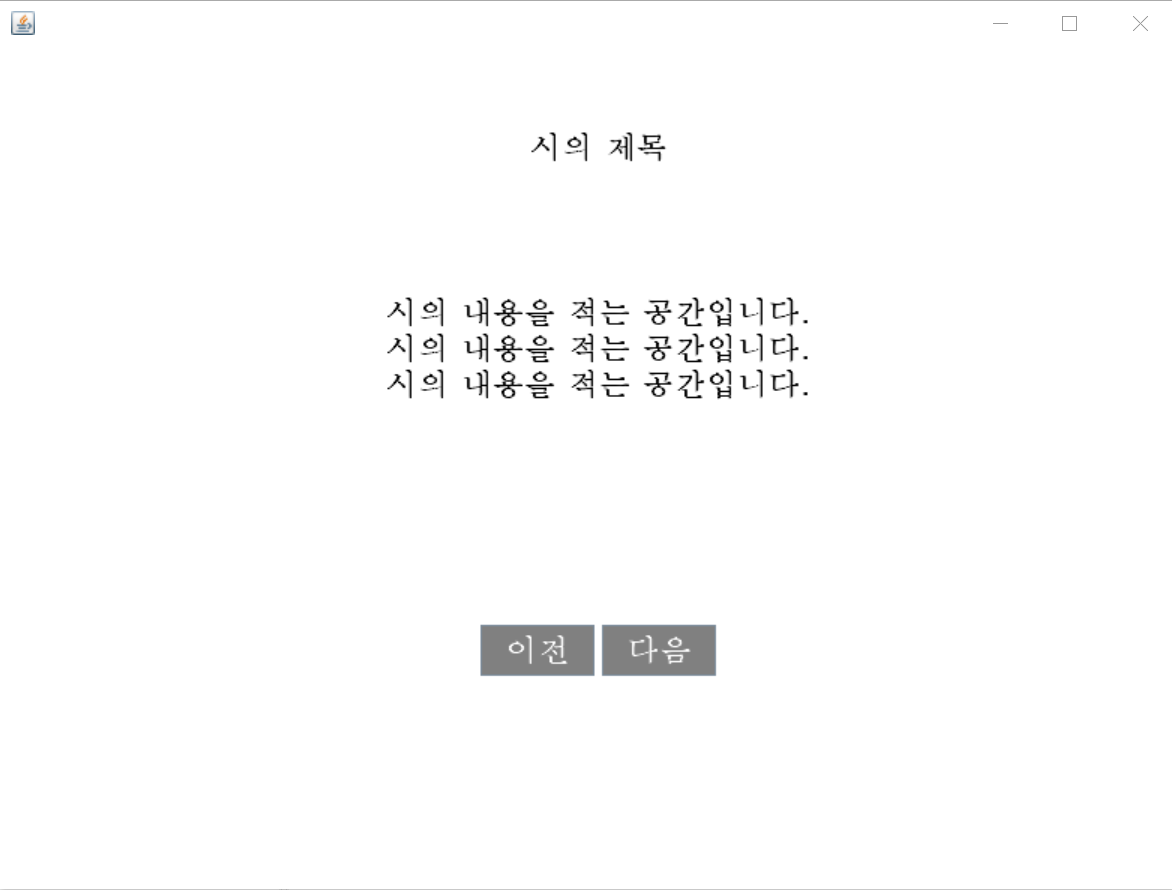 위치를 지정하기 위해 poemTitlePanel, poemContentPanel, poemButtonPanel 패널도 만든다.